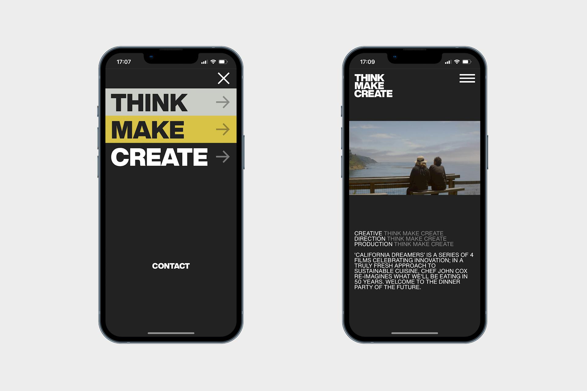We applied the same logic to our website design. Using the three words – Think / Make / Create – as a robust structuring device, we created distinct areas for TMC to clarify their point of difference, explain their process and showcase their dazzling work. A custom player provides enhanced loading and seamless playing for a naturally video heavy website.